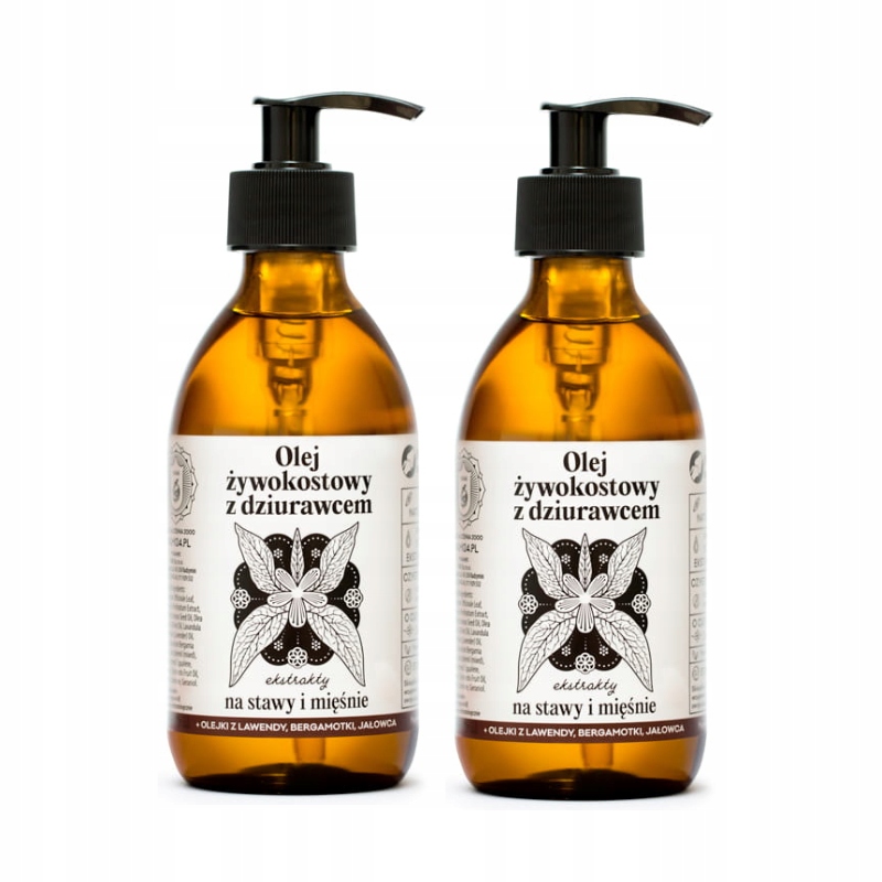 Naturalny olej żywokostowy z dziurawcem do masażu terapeutycznego.